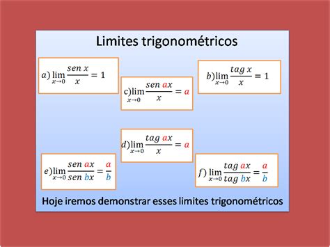 Limites trigonométricos são limites calculados em funções trigonométricas. Para resolver limites trigonométricos,. Partindo da identidade trigonométrica fundamental, reescrevemos o numerador: Podemos, portanto, transformar a fração em um produto de frações: É comum dizer que este limite é igual a 1.