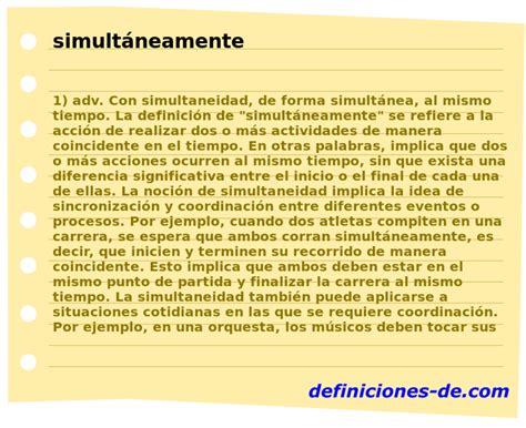 Dicio, dicionário online de português, definições e significados de mais de 400 mil palavras. Todas as palavras de a a z. Significado de juntamente no dicio, dicionário online de português. Combatiam juntamente gregos e troianos. Foi ao teatro juntamente com a mãe. Definición de simultáneamente, descubre el significado y todas las acepciones que tiene simultáneamente también puedes ver su etimología, su categoría gramatical, como es simultáneamente en otros idiomas y refranes donde aparece la palabra simultáneamente. A impressão que se tem é que vigna finalmente mostra os dentes, em um gesto que é simultaneamente um esgar agressivo e uma gargalhada. ; A noção de um lugar intermediário, marcado por intensidades e definido por pertencer simultaneamente a dois hemisférios (céu e inferno, culpa e inocência, casa e rua, pessoalidade e impessoalidade), manifesta uma óbvia. A simultaneidade é um termo que deriva do latim “simultaneus”, que significa “ao mesmo tempo”. Definición de simultáneamente en el diccionario de español en línea. Significado de simultáneamente diccionario. Traducir simultáneamente significado simultáneamente traducción de simultáneamente sinónimos de simultáneamente, antónimos de simultáneamente. Información sobre simultáneamente en el diccionario y enciclopedia en línea gratuito. Que se realiza ao mesmo tempo (que outra ou outras coisas são realizadas). 2. Que aproveita a muitos ao mesmo tempo. Significado de simultaneidade no dicio, dicionário online de português. Característica do que é simultâneo, do que ocorre ao mesmo tempo que outra coisa; Designação de uma ou mais ações, coisas ou. Eu faço duas coisas ao mesmo tempo. Eu faço duas coisas simultaneamente. Cunha e cintra, na nova gramática do português contemporâneo [lisboa: